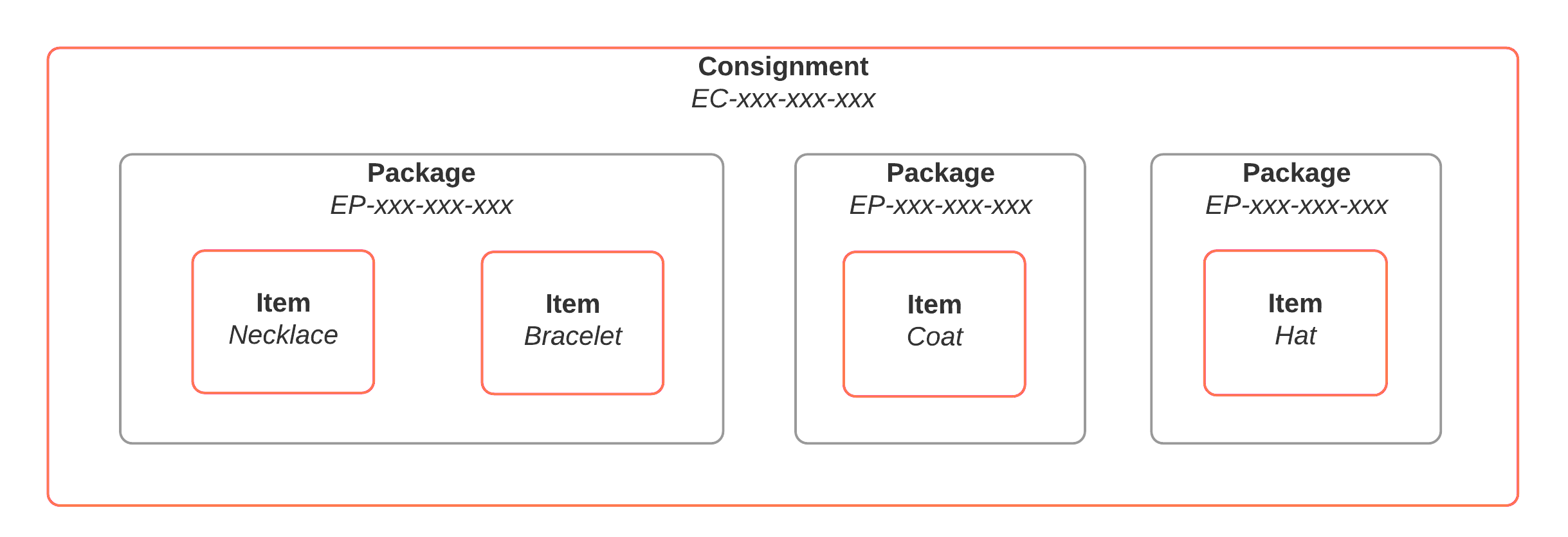 In the context of the Consignments platform, the term “consignment” refers to a collection of one or more packages that are shipped from the same origin address, to the same destination address, on behalf of the same Sorted customer, using the same carrier service, on the same day. A consignment must contain at least one package.
